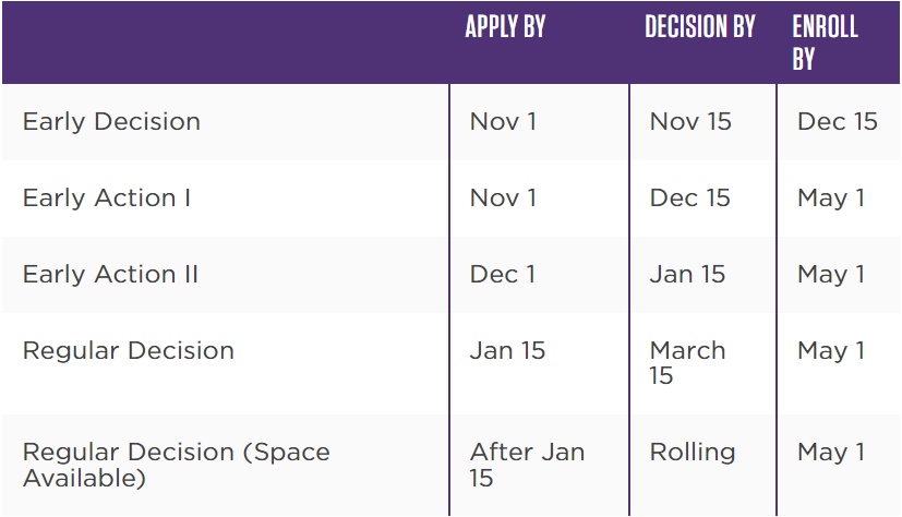 Our applications typically open in early August. The due dates for each of the application cycles are listed in the table below.