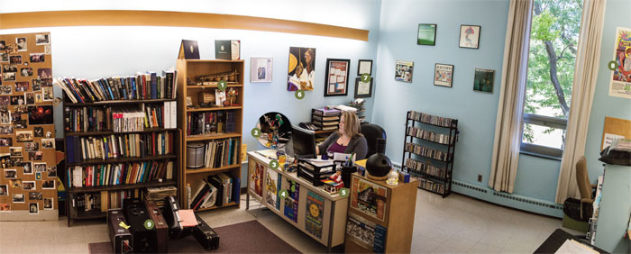 Her office on the second floor of the Ford Center for Fine Arts is open throughout the day and often filled with music students and other members of the department. Welcome to her office.