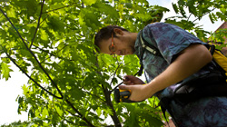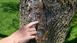 Beetles are formidable tree foes. Beetles spread a fungus that wiped out elms in the 20th century. Burrowing under the bark as they feed, grubs of the emerald ash borer are killing ash trees in the 21st. Knox grounds staff were the first in Galesburg to officially report ash borer damage, spotted on a tree by Prats Soccer Field. "When you see leaves sprouting from the trunk, it's a sign the tree is already overwhelmed," says Grounds Director Jake Morgan. Some 50 campus ash trees will need to be removed.