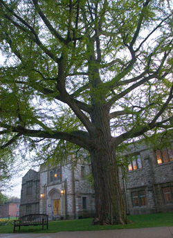 Unlike the "General Knox Elm," the ginkgo outside Seymour Library can't claim a nickname or a dedication ceremony. But it does have its own webpage, created by dedicated fans who work in the library. They keep a close eye on changes, get reports on its condition, and hold an informal contest to predict when its leaves will drop every fall -- often on a single day. "I adore that tree," says Jason Connell '06, a public services assistant in the library. "It's a big part of our lives."