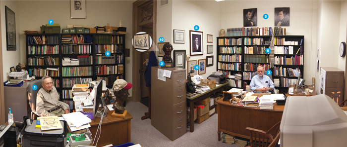Professors Rodney Davis's and Douglas Wilson's time at Knox has spanned close to 50 years and yielded numerous books and awards, as well as multitudes of publications. They began studying Lincoln together in the 1980s and formed the Lincoln Studies Center in 1997. Their work has helped expand the history of Lincoln and hasn't gone unnoticed, with both winning high praise from fellow Lincoln historians. They were jointly honored for their Lincoln scholarship by the State of Illinois with the Order of Lincoln, and Wilson's books Honor's Voice and Lincoln's Sword both were awarded the Lincoln Prize, one of the most prestigious awards in the field of American history.