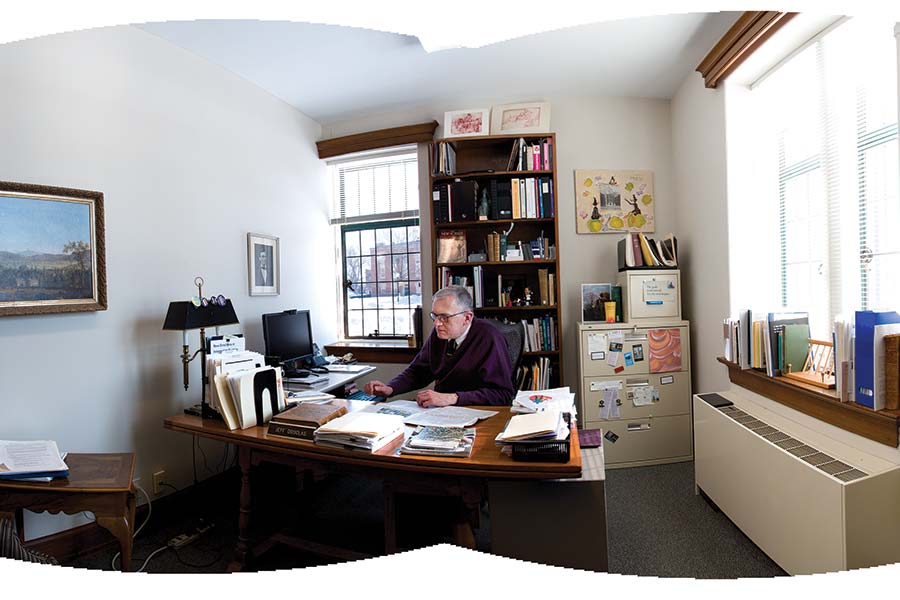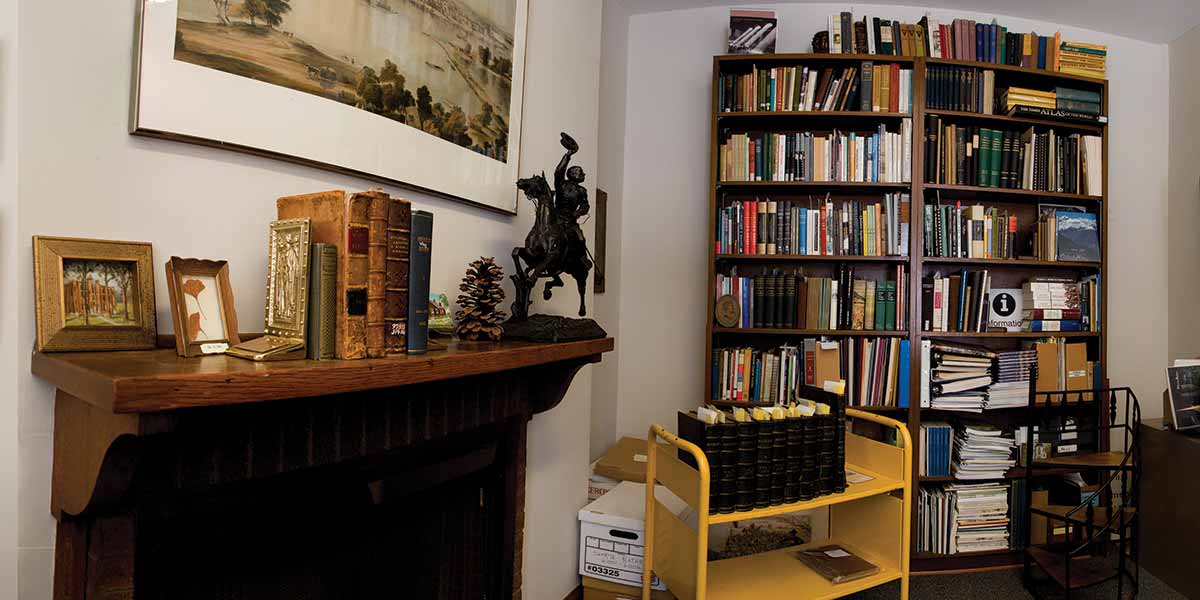 9. The fireplace. Douglas believes his might be the only campus office with its own fireplace, dating back to when the office was part of a larger room where art history classes were held. “I don’t know if the fireplace was ever regularly used, but I like to think of Depression-era students learning about Rembrandt or other artists considered worthy of study back then while warmed by a fire—nothing like today, when we can download and manipulate millions of images of works of art on our phones or laptops through Artstor.”