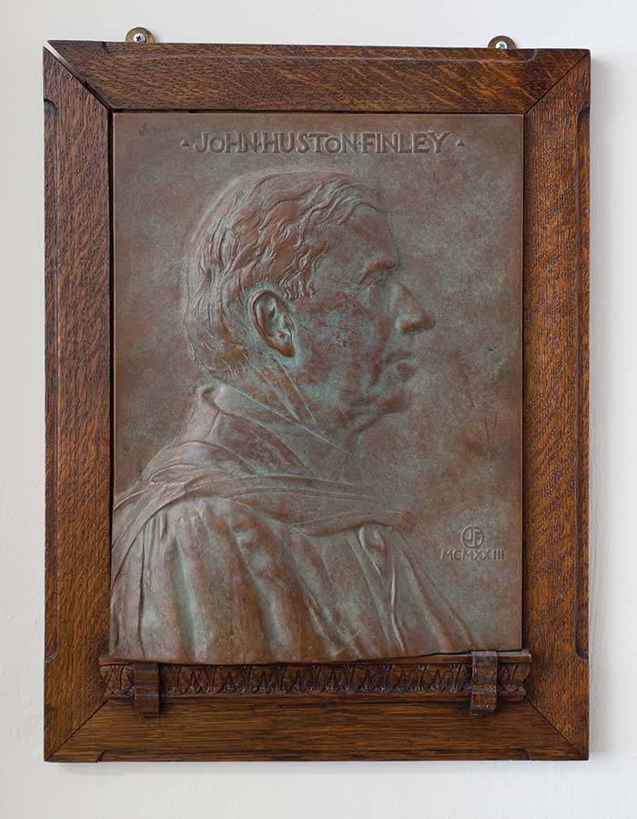 7. A bas-relief of John Huston Finley. “Before he was president, he was not only a student here but also the student librarian when the library was just an upstairs room in Old Main. His jobs included keeping the stove going to warm the library. He edited the first good catalog of the library’s collections, and even set the type for it—we might think of that today as his senior capstone project. I think his spot in that corner was well-earned.”