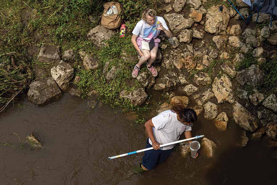 For almost two weeks, the students conducted a literature review to find out about the pollutants and plan how to do microplastic collection and lab work. After they familiarized themselves with the content, the students waded into nearby streams and lakes to gather the samples.