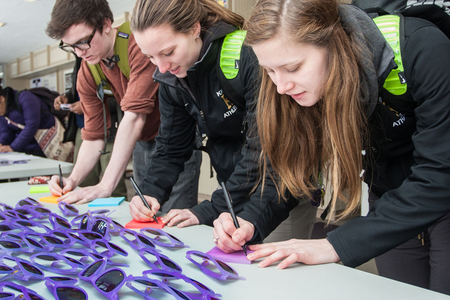 To celebrate Donor Thank You Days, approximately 85 students wrote thank you notes to Knox donors and hundreds more signed a huge card to thank donors for their gifts to the College. In all, nearly 350 students thanked donors to the College and received special Donor Days sunglasses to commemorate the occasion.