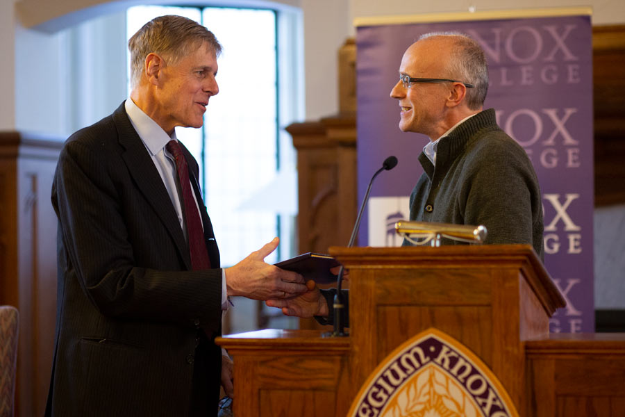 He closed his acceptance speech by advising students to take advantage of the amazing intellectual, foundational knowledge of Knox, “if you take that out into the world, you’ll have a better understanding not only of your purpose here on this Earth, but also of how to make a more positive impact on every human life that you touch.”