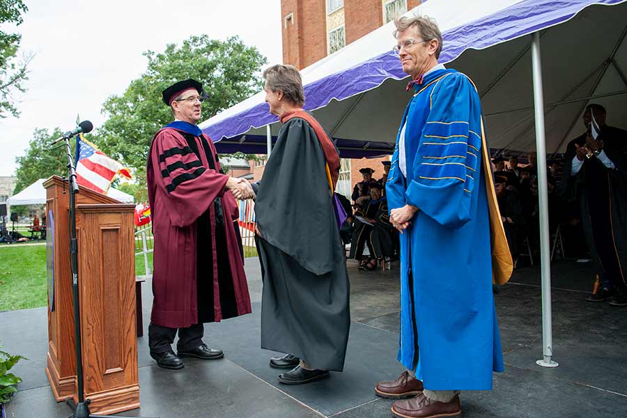 President C. Andrew McGadney welcomed the Class of 2026 and other new and returning students to Knox College at the Opening Convocation on September 12, 2022. The blustery day signaled not only the first day of classes, but also the advent of fall.