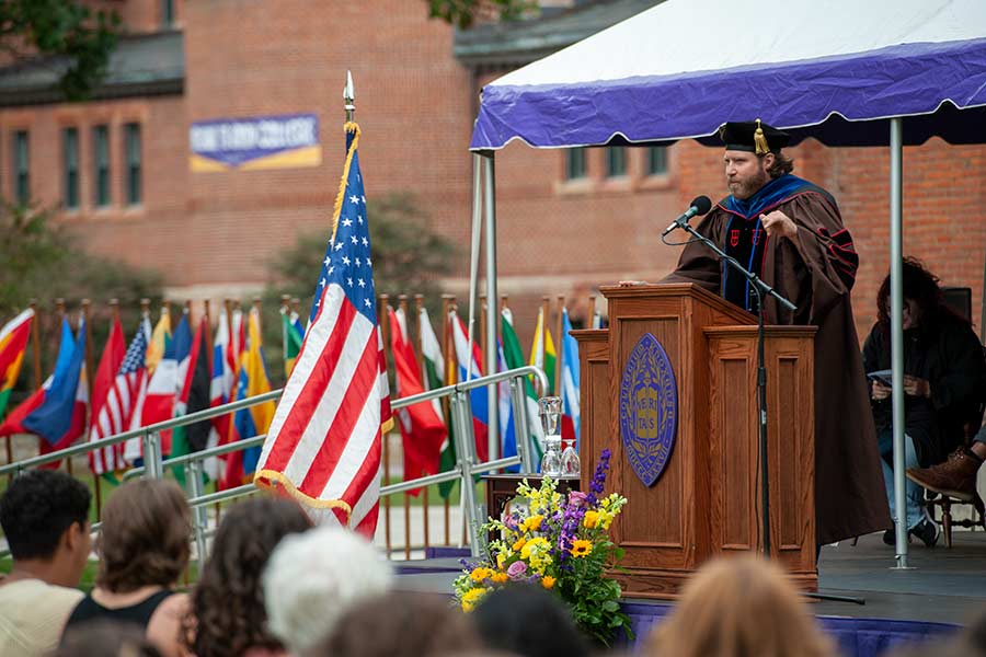 Nicholas Gidmark, associate professor of biology, provided the Convocation Address, inviting students to visit “libraries,” which he said weren’t just buildings, but incubators of knowledge.