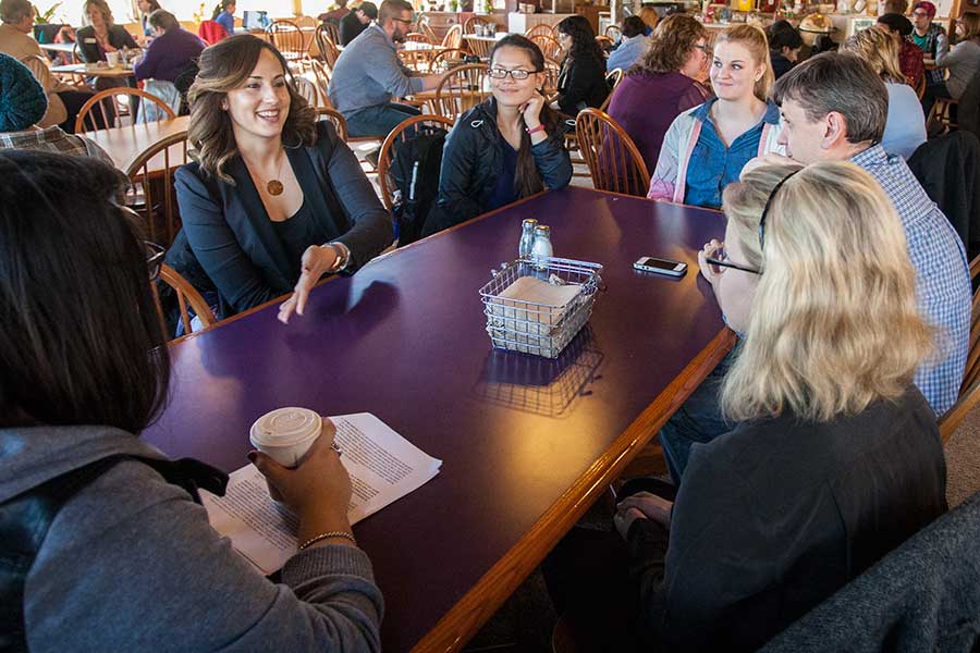 "Marcea is a nationally recognized speaker on some of today's most pressing topics for working women, such as surviving work/home imbalance and building a successful blended family," said Lane Sunderland, Chancie Ferris Booth Professor of Political Science, at the awards presentation. Lloyd spoke with Sunderland's American Constitutional Law class before the awards presentation.