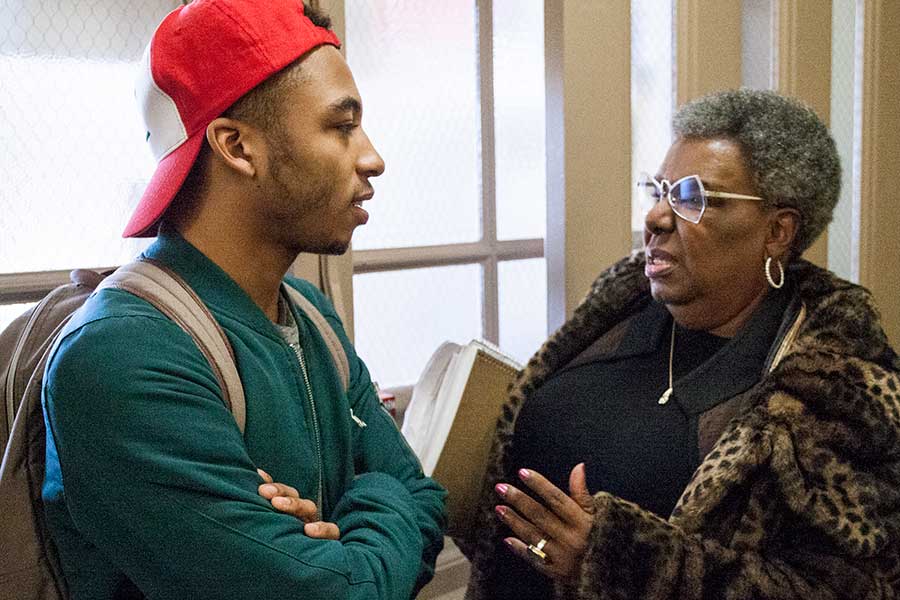 Pictured above, Rachel Abarbanell talks about her career with students in the Gizmo. Marcea Bland Lloyd meets with a student after a constitutional law class.
