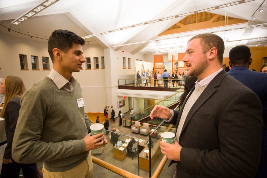 Knox alumni shared career insights and interviewing tips with current students during an evening of networking on October 18. The event, which is open to all class years, is organized annually by the Bastian Family Career Center and the Alumni Relations Office.