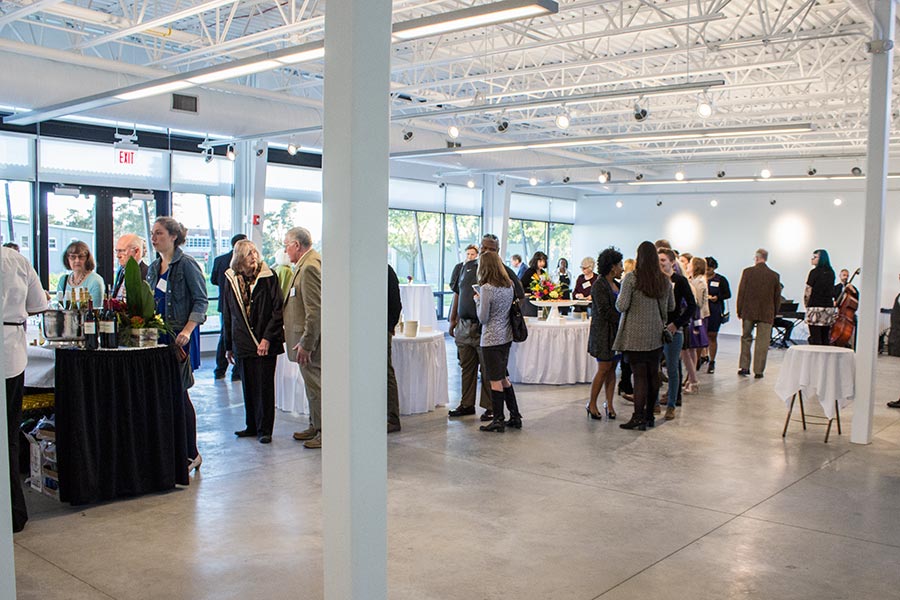 Following the ribbon cutting, President Teresa Amott welcomed alumni and friends of the College to tour the 30,000-square-foot center, which she noted as being bold, contemporary, technologically sophisticated, and sustainable. "When you enter the building, I hope that you will take time to imagine it filled with color, as well as art in the making and art for the viewing. It will be an extraordinary place."