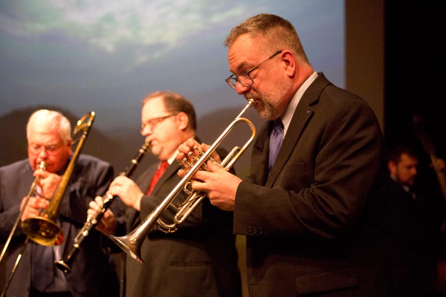 The celebration of his life began with a jazz combo, John Cooper and the Lamoine River Ramblers, leading a processional through the CFA lobby and into Harbach Theatre. The musicians performed “A Closer Walk with Thee,” playing slowly and mournfully at first, then faster and more joyfully.