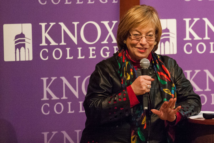 Her recent visit to Knox was sponsored by the Eleanor Stellyes Center for Global Studies, which brings guest speakers from around the world to the Knox campus. The Stellyes Distinguished Lecture in Global Affairs was established along with the Center for Global Studies by a gift from Eleanor Stellyes, who attended Knox College from 1932 to 1934.