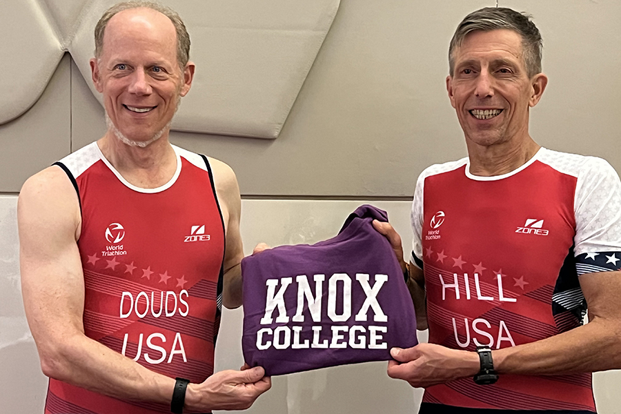 Knox College classmates Bryn Douds ’77 and Doug Hill ’77 completed an impressive feat finishing 14th and 16th, respectively, in the 2022 World Triathlon Championships in Abu Dhabi as part of the U.S.A. Triathlon team.