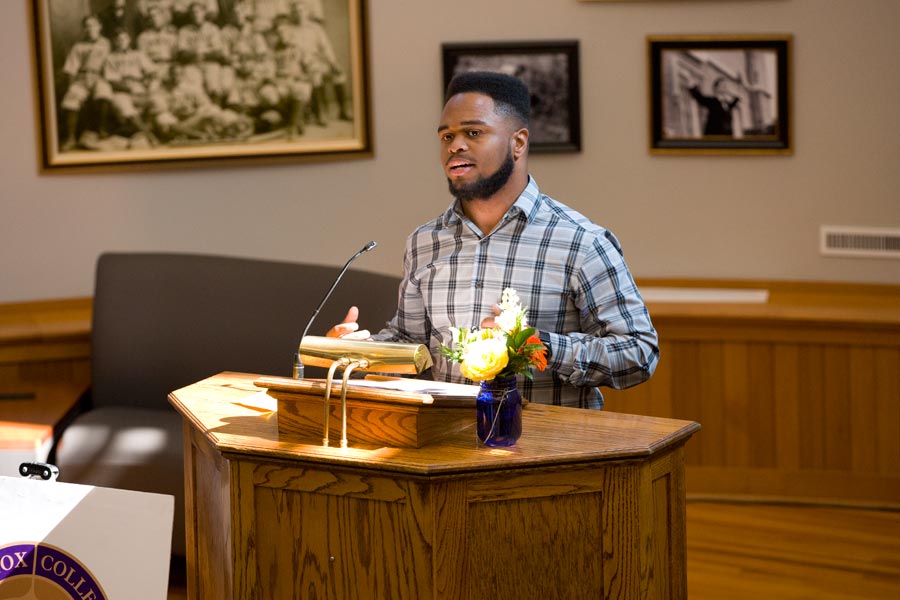 First-generation students often arrive at college unprepared, Knox College graduating senior Domanique Rahman '19 told the audience at Knox’s fourth annual First Generation Reception on June 1. Rahman speaks from experience because he, too, is a first-generation student, the first in his family to earn a college degree.