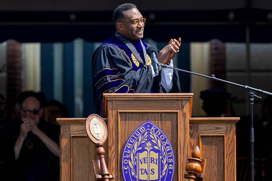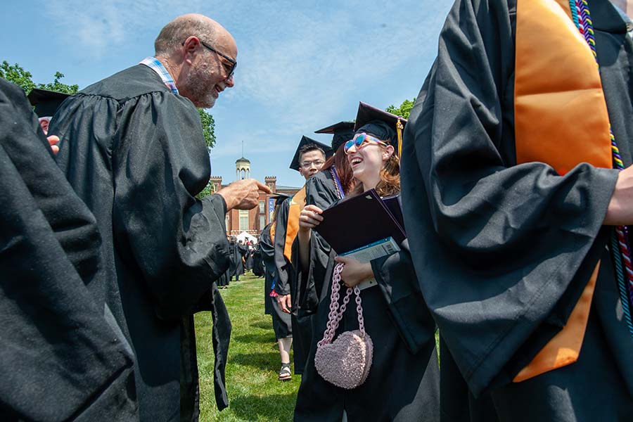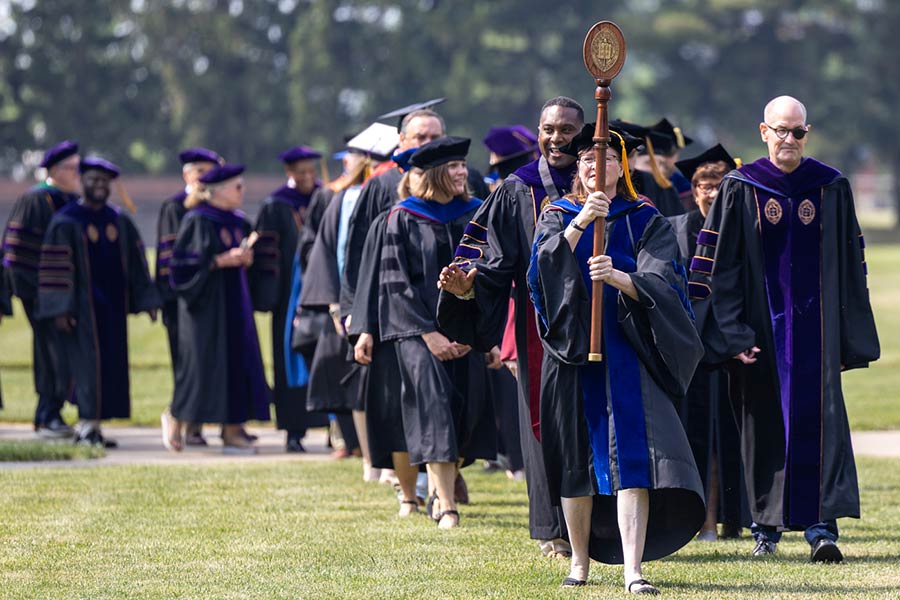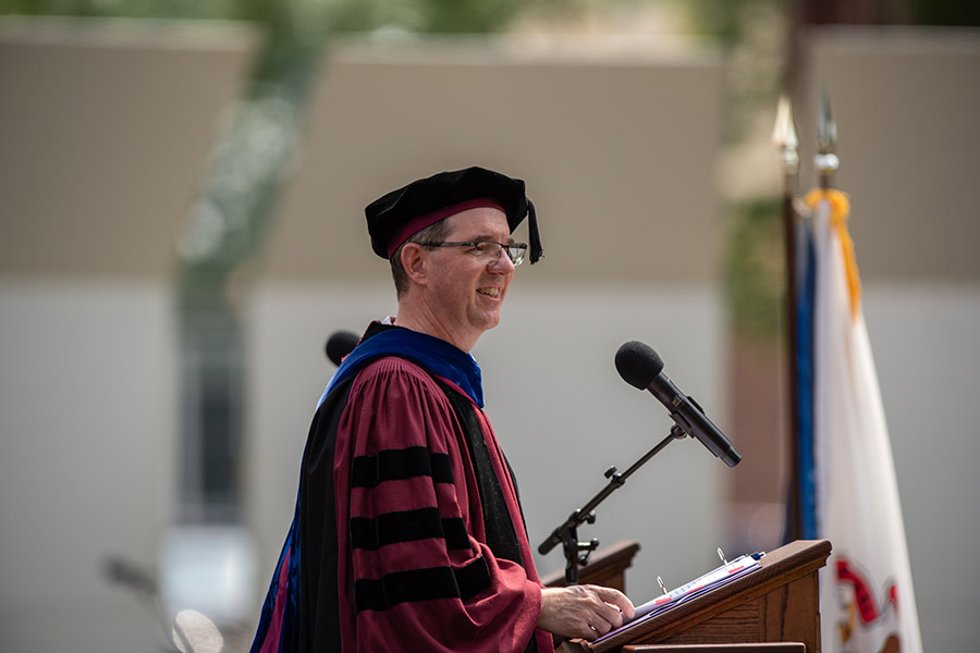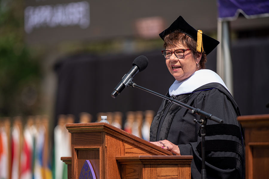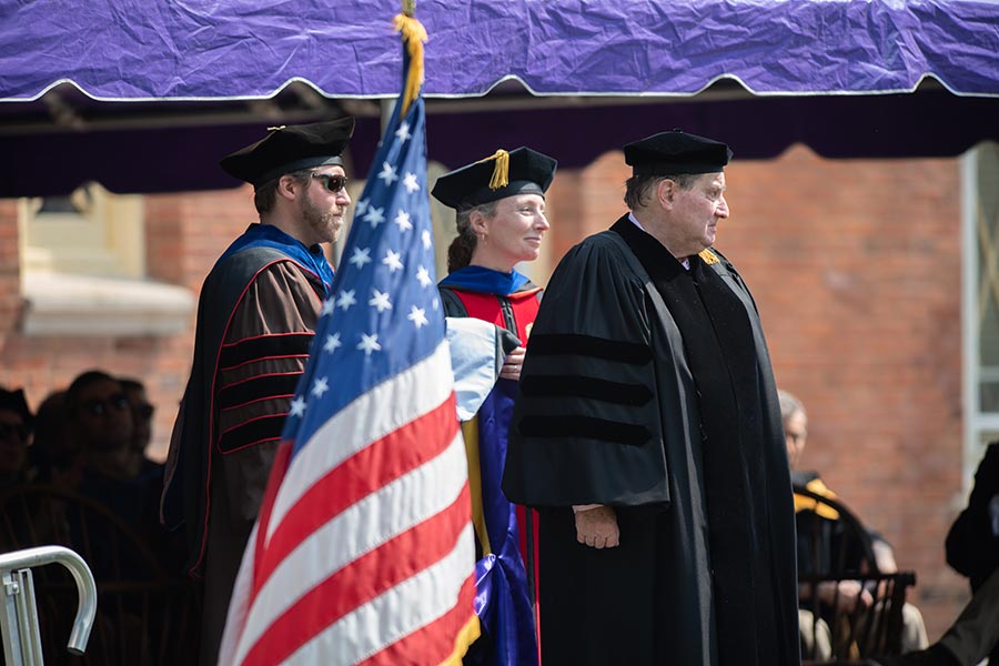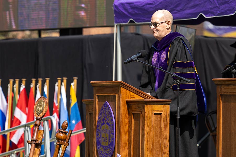 Chair of the Knox College Board of Trustees Tony Etz '83 opened the ceremony, welcoming all in attendance. He highlighted the achievements of Knox Athletics teams, acknowledging the Knox athletes who achieved All-American honors in track and field, as well as the Women’s Basketball Team for their appearance in the NCAA tournament. Etz emphasized that even as these achievements were part of their own stories, every graduating student also had an impact on the larger community during their time at Knox. “You made your mark. Every single one of you changed Knox College," Etz said.