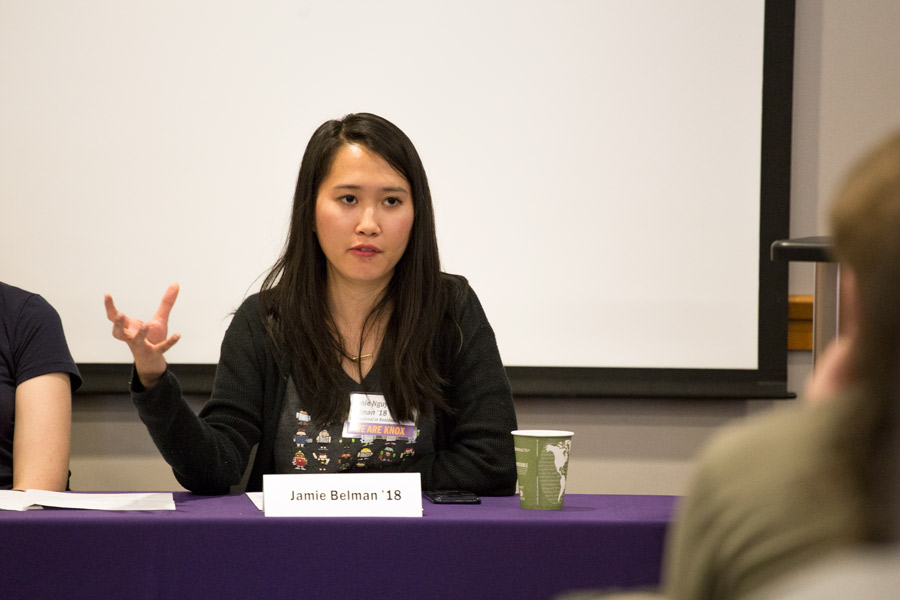 Fortunately, alumni were optimistic and insightful. The panel unanimously struck down the idea that underrepresented students should be scared of this industry. Jaime Nguyen Belman '18, for one, highlighted how gradual changes in representation have a cascading effect. "I was the only woman software engineer on both teams [I worked on]," she said. "It was a struggle. But [now], students at Knox see me as someone to reach out to."