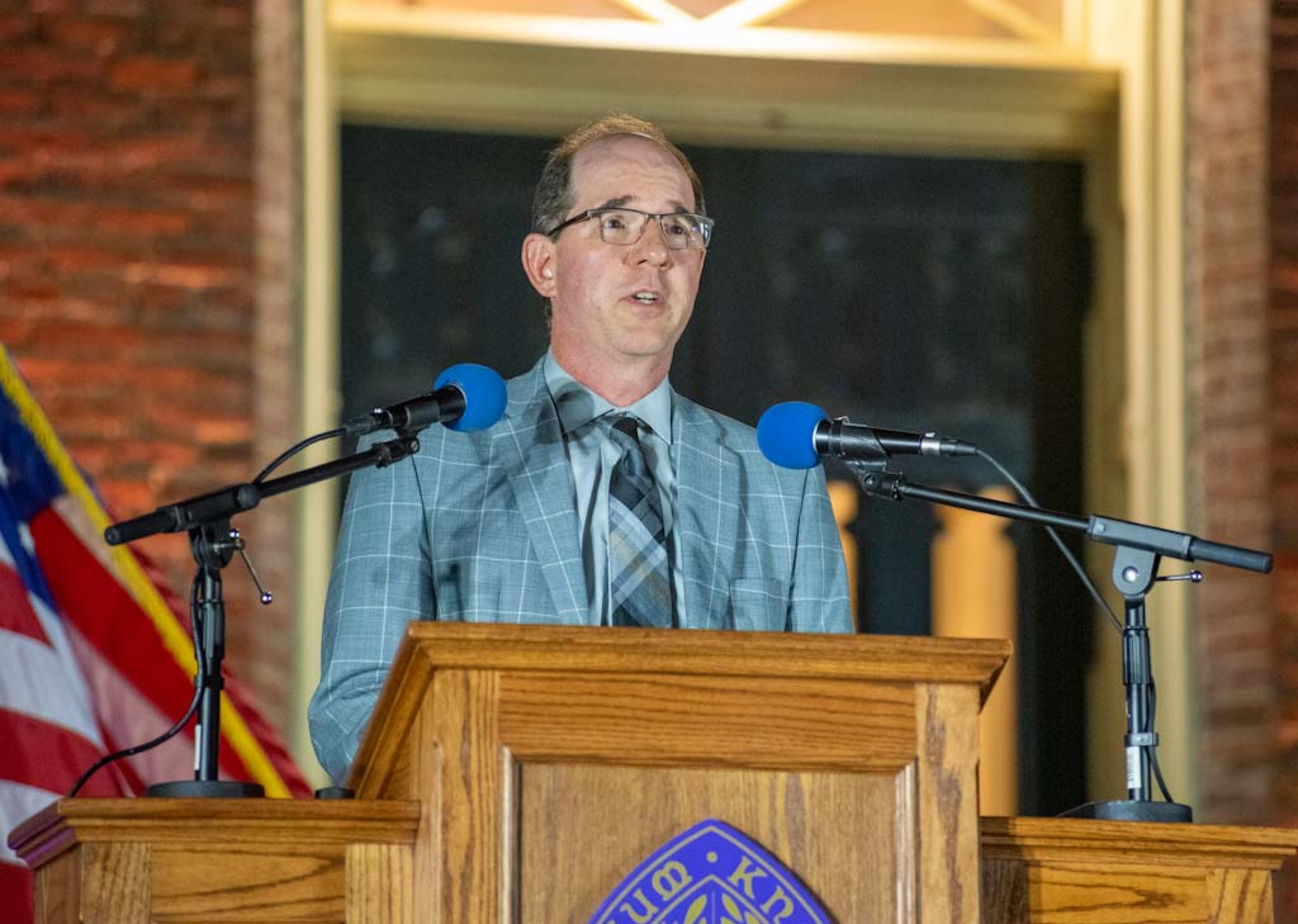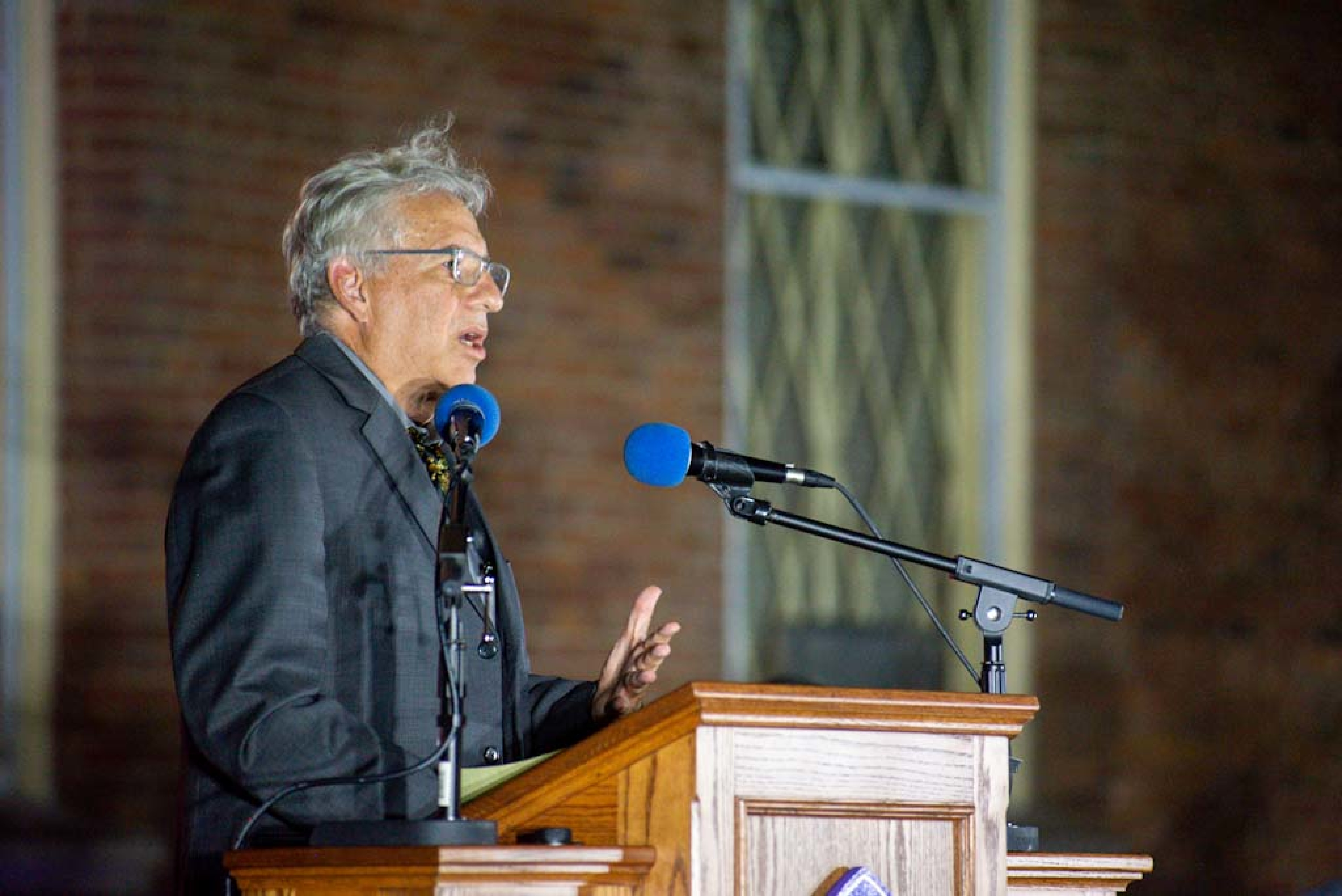 Knox College President C. Andrew McGadney opened the debate, reminding the audience of the significance of the venue. Old Main serves as the only remaining original building from the 1858 Lincoln-Douglas debates. McGadney said that healthy debate was part of the College’s mission to develop great minds and creating global citizens.