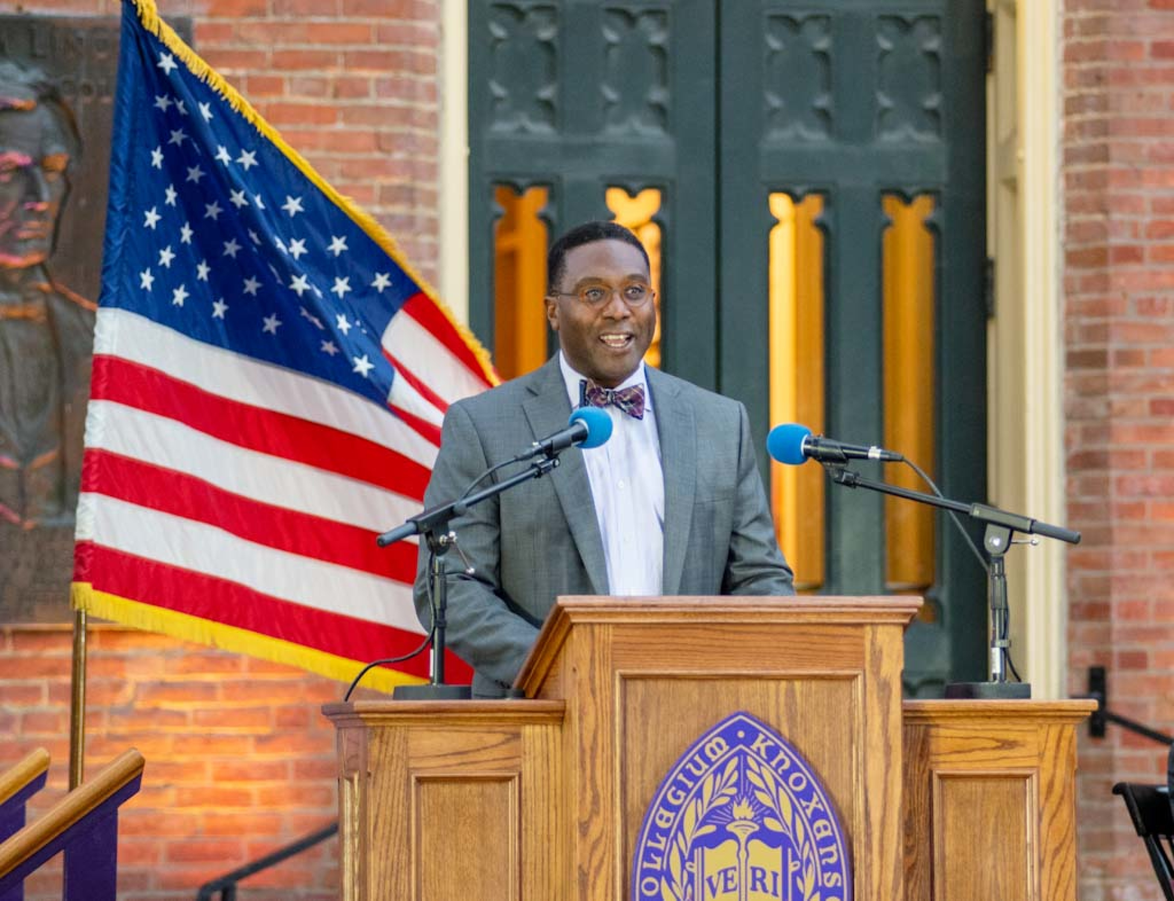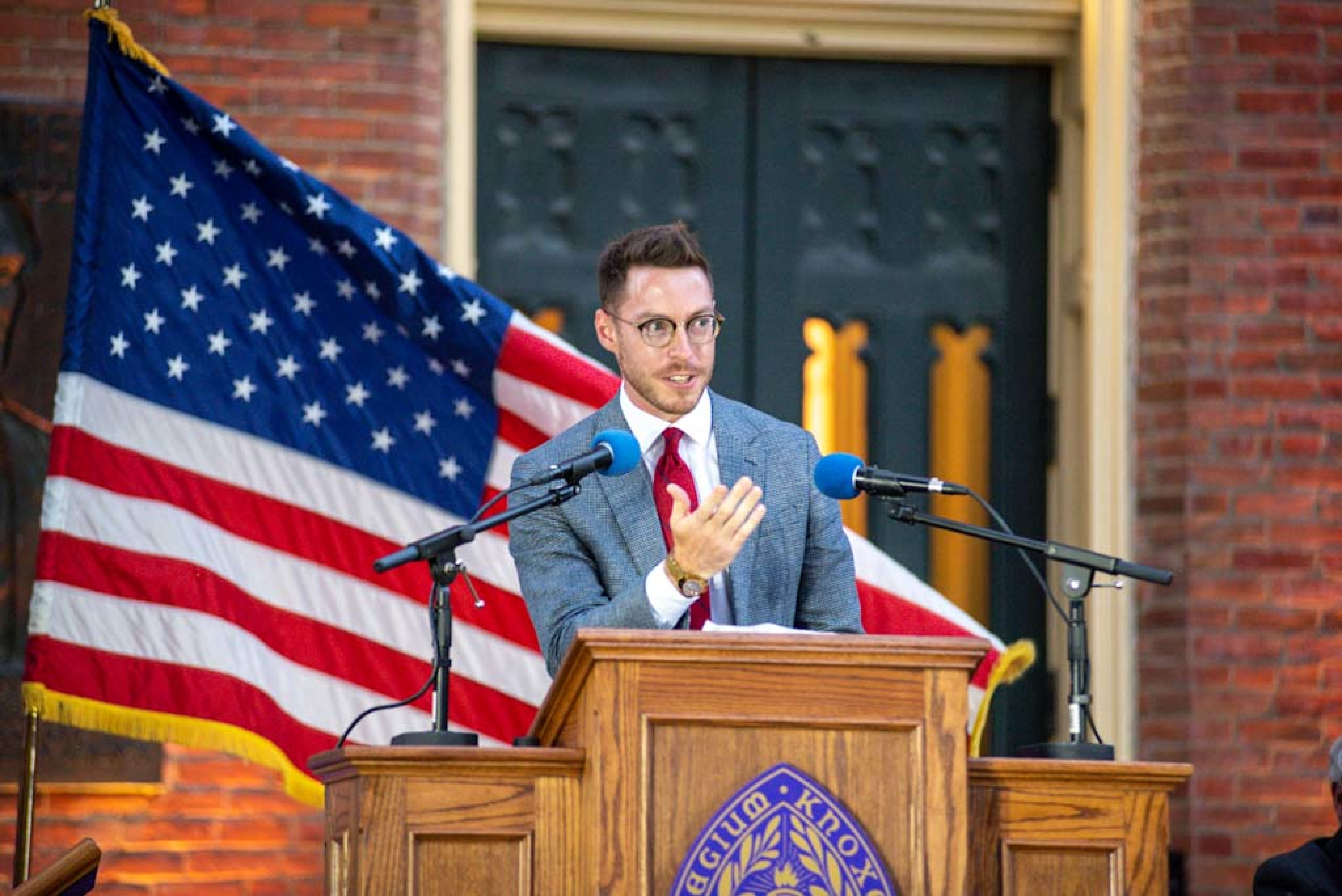 A large audience filled the East Lawn of Old Main September 20 as Knox College hosted a debate to celebrate Constitution Day.