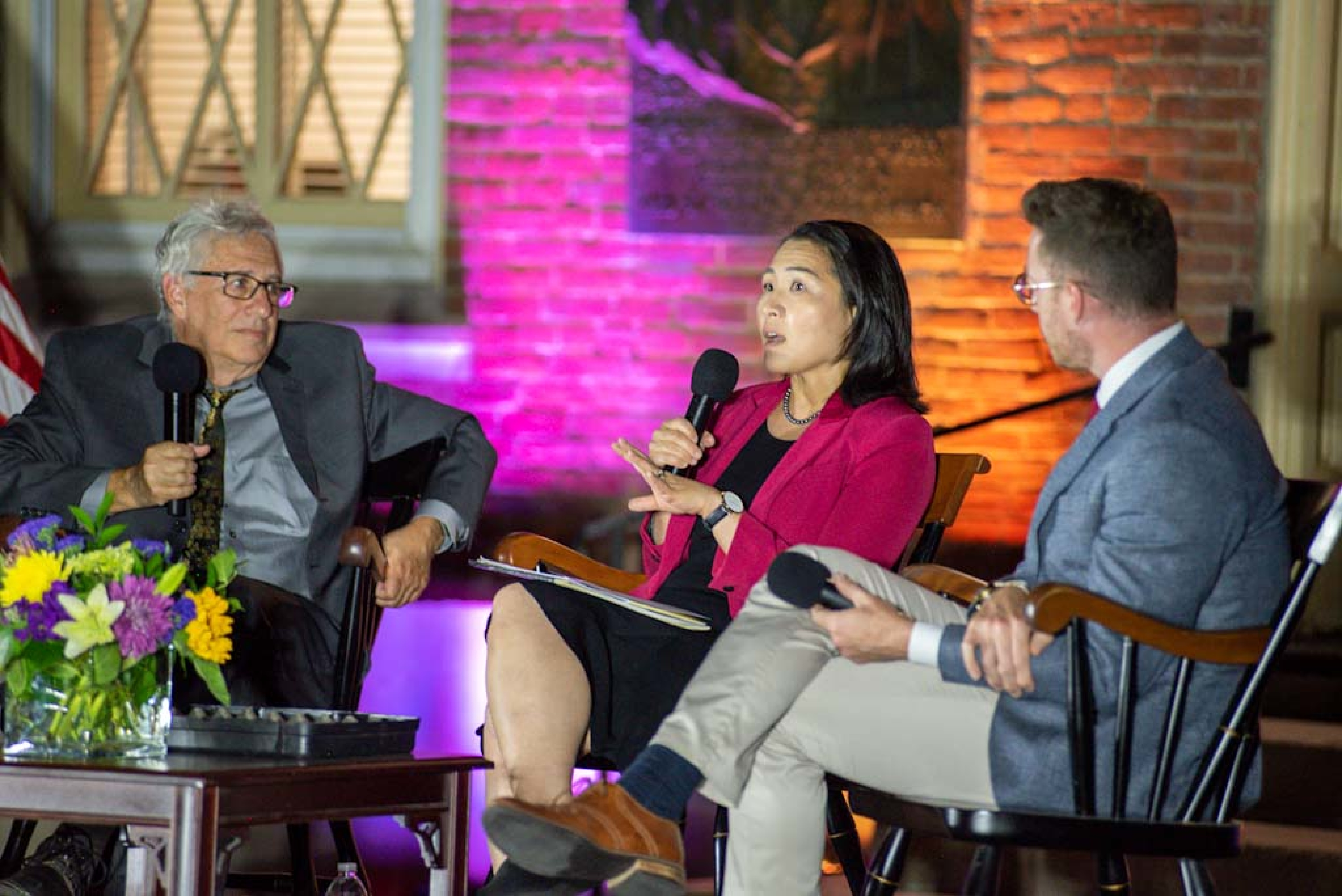 The remarks were followed by a conversation between the two and moderator Thomas Bell, assistant professor of political science. Bell later turned the microphone over to the audience, allowing them to guide the conversation through a question-and-answer opportunity.