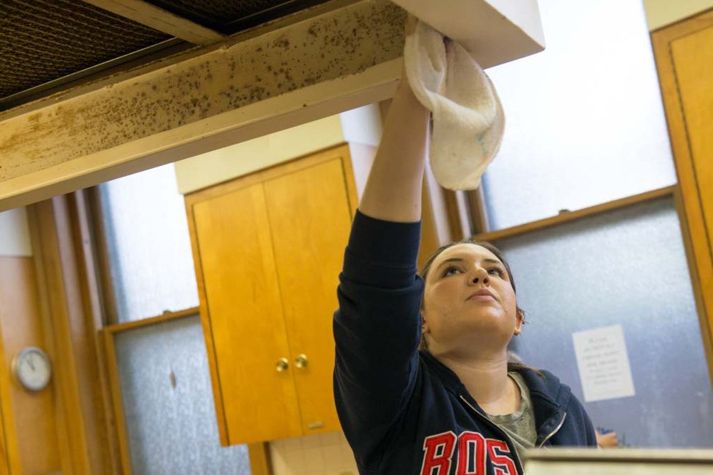 "We tend to get caught up with our classes and our lives on campus, but we need to break the Knox bubble and not be afraid to participate in the Galesburg community," said Sofia Tagkaloglou '18, who volunteered at KCPK's Spring Cleaning.