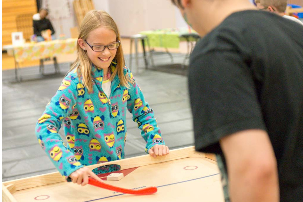 Students ran kid friendly booths and featured creative activities like button making, henna, bike generated smoothies, and a bean bag toss.