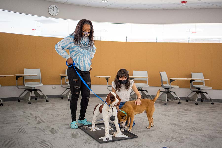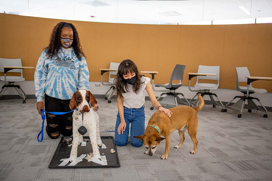 The study attracted around 25 owners and dogs, including Knox students, staff, and faculty members. Professor of Biology Jennifer Templeton and her students, including Alyssa Habschmidt ’22, assisted Koonce with the experiment.