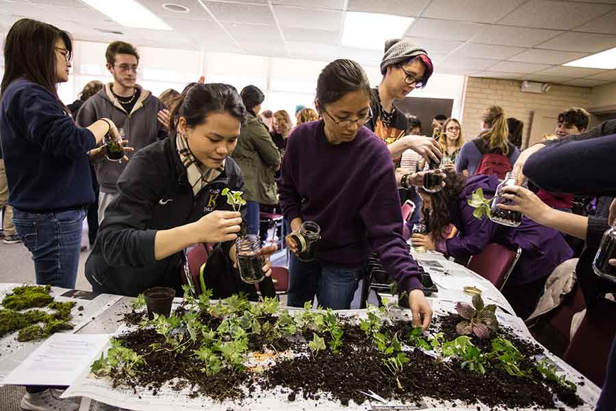 Community representatives at the event included the Galesburg Farmers Market, local restaurant En Season, and Sitka Salmon Shares. Other activities at the festival, sponsored by student clubs and organizations, included making an Earth Day pledge, planting microgreens, Tarot readings, and face painting.