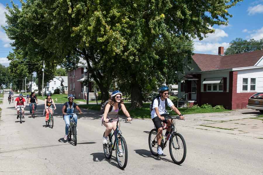 The tours included a bicycle ride through Galesburg, an introduction to Galesburg art centers and cultural venues, a tour of local food systems, and a visit to Knox's Green Oaks Biological Field Station.
