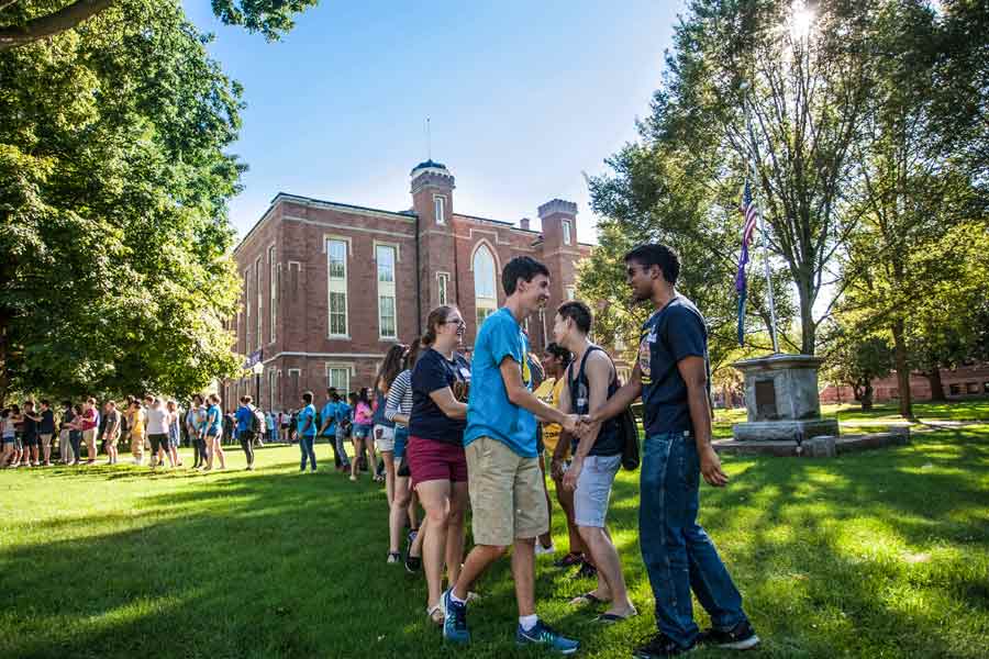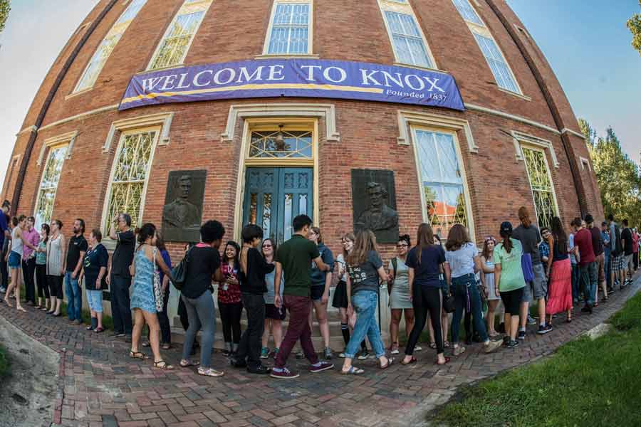 (Photos above: Knox College students perform community service and tour Galesburg as part of Explore & Engage Galesburg. Students and other members of the Knox College community get together for the traditional Pumphandle ceremony.)