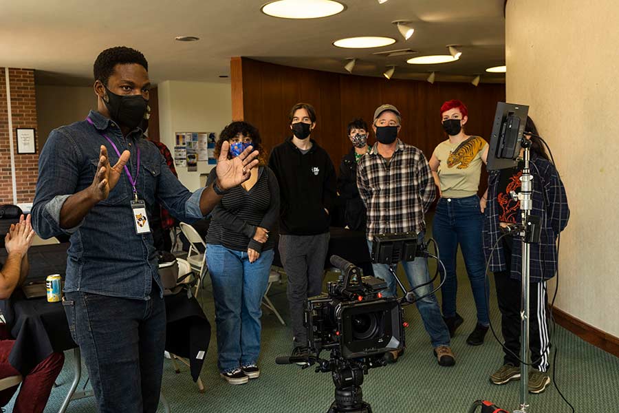 “He was really detailed and let us engage. Setting up our two scenes was fun. It felt real and reachable—like we can get there, we can do this,” observed Frenchi Espinoza ’22, who is majoring in anthropology-sociology. She said that she’ll apply lessons from the workshop as she creates a documentary for a senior research project.