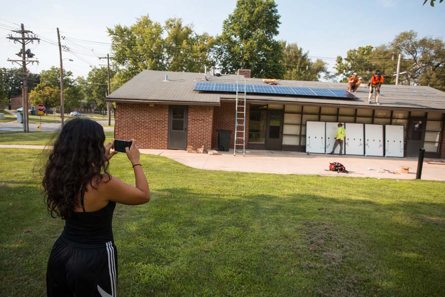 Instead of a traditional ribbon-cutting, Tagkaloglou and Knox College President Teresa Amott led a group of students and staff in a ceremonial "unplugging" in September to celebrate completion of the project and symbolize the larger goal of switching from non-renewable to renewable energy sources.
