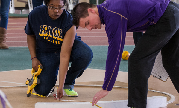 Prairie Fire track and field athletes and coaches spent one of their first days of spring season volunteering at a Galesburg High School track meet, held in Knox's T. Fleming Fieldhouse because of construction at GHS.