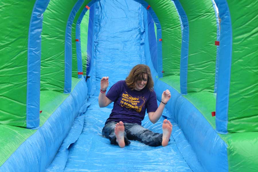 Afternoon events, including an inflatable climbing wall and booths where students decorated their own flip-flops and frisbees -- were moved to T. Fleming Fieldhouse because of the threat of thunderstorms.