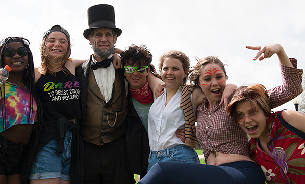 Skies were overcast, but that didn't put a damper on Knox College's Flunk Day, a traditional spring surprise party that dates back nearly 100 years. The theme of this year's event was Wild Wild Flunk and featured a mechanical bull, karaoke, gladiator joust, antique photos, and rock wall.