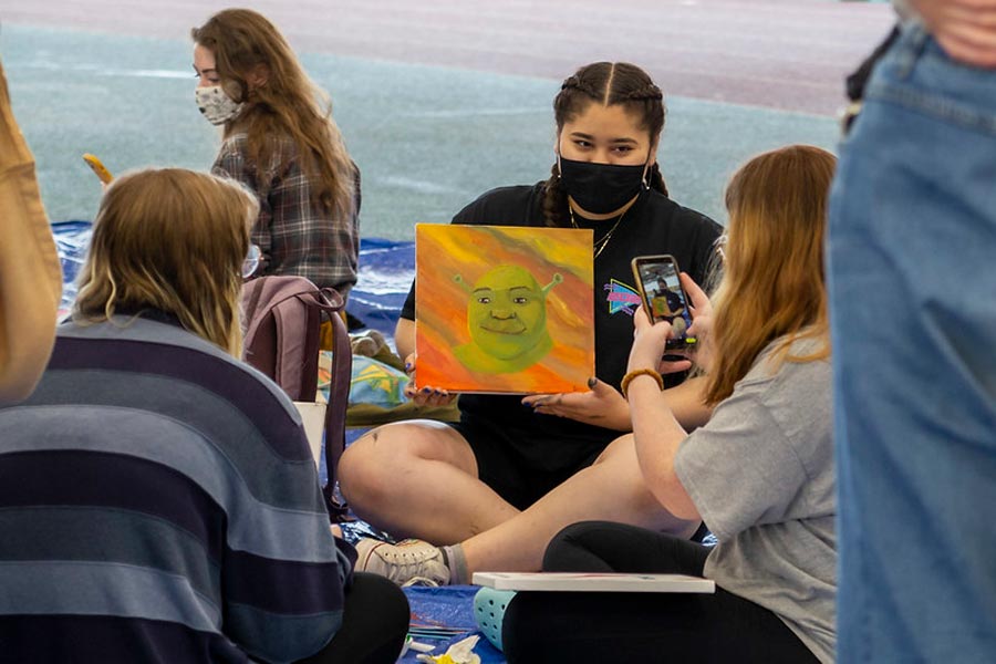 With the majority of the in-person events taking place indoors, Ford Walters ’24 was initially concerned about the safety of the student body surrounding COVID-19. However, the safety measures employed by the Flunk Day Planning Committee—as well as the entire Knox community—put him at ease. “It definitely gives me hope for the future,” Walters said. “Because I feel like having something like this is a testament to what we can do as a community. I see everyone has a mask on. I see everyone social distancing. Everyone is really coming together and having fun while in a pandemic.”