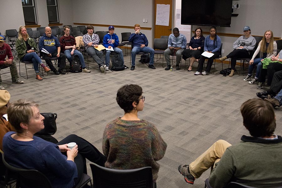 Working in groups of four or five, students in the class assisted the Heart & Soul effort by doing interviews, helping with data, attending leadership meetings, and other tasks. At one of those meetings, the conversation turned to the "divide" between Knox and Galesburg, and a couple of students offered to promote and organize an on-campus forum on the topic. "They took on that role themselves and did all of the work," Gonzales says. "It wasn't required at all for the course."