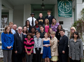 An induction ceremony for the 15 new Gale Scholars -- the Class of 2015 -- took place on May 3 at the George Washington Gale House in Galesburg. Speakers at the ceremony included Gale Scholars currently at the high school, CSC, and Knox, as well as Knox College President Roger Taylor (shown in photo above, speaking to students).