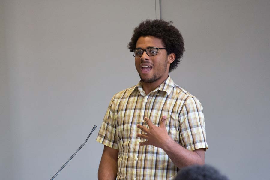 Below, Gale Scholars speaking at the induction: Kyran Blissett of Galesburg High School, Stephen McAllister of Carl Sandburg College and Shakisha Grays of Knox College.