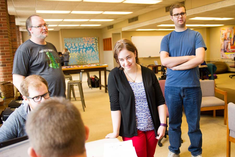 A monkey and a robot join forces to battle crime. Unicorns hang out with other mythological animals in a unique zoo. Those are a couple of the ideas that Knox College students came up with as part of Game Jam—an event bringing together people who want to create video games.