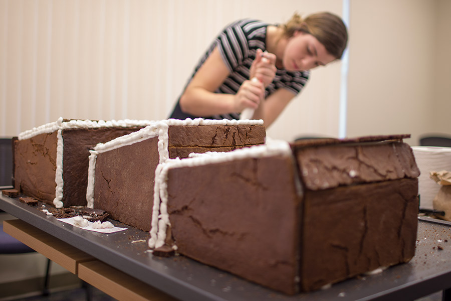 Inspired by the new center, Knox students, staff, and faculty decided to have a little holiday fun and create a replica of the building—out of gingerbread.