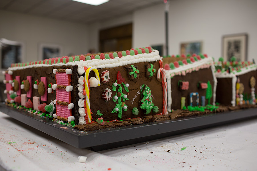 While the gingerbread art center is structurally a replica, true to its name, the creative and artistic juices of Knox faculty, staff, and students flowed while they took work or study breaks to complete the building.