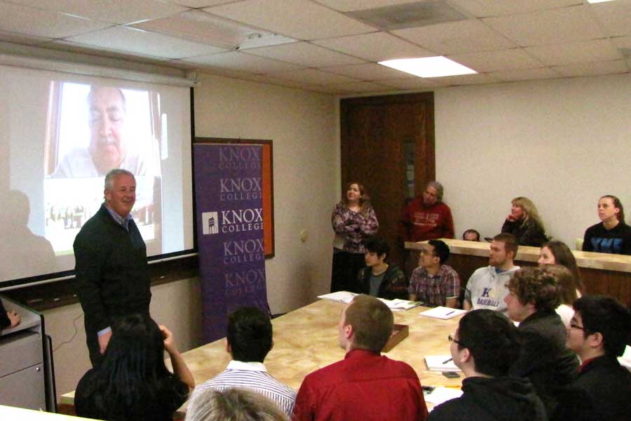 Knox College students in faculty member John Spittell's classes got the opportunity to learn from one of the world's top business leaders, the recently retired president of the Wm. Wrigley Jr. Company.