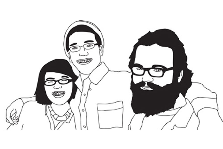 The innovative website, which launched in January 2012, currently holds more than 1,200 audio files of poetry, stories, and interviews. The material was collected by Knox students Emily Oliver ‘11, Sam Conrad '11, and Bryce Parsons-Twesten '10 as they drove from city to city all over the United States. (Above, from left: Emily Oliver, Bryce Parsons-Twesten, and Sam Conrad. Illustration by Parsons-Twesten.)
