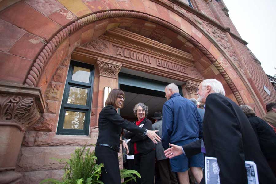 The Alumni Hall rededication and ribbon-cutting ceremony attracted hundreds of people eager to take a peek at the historic structure, long unused but now transformed through a $12.5 renovation project.
