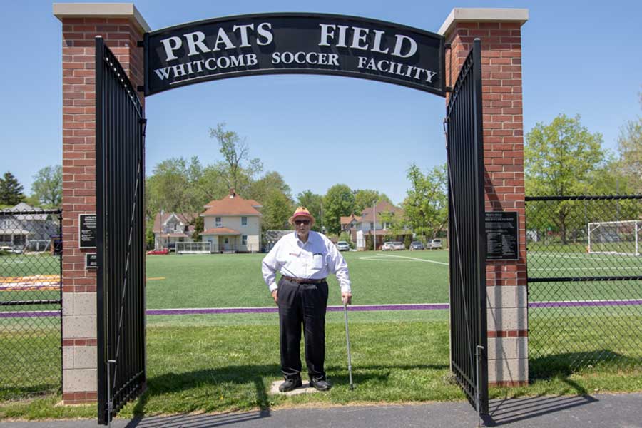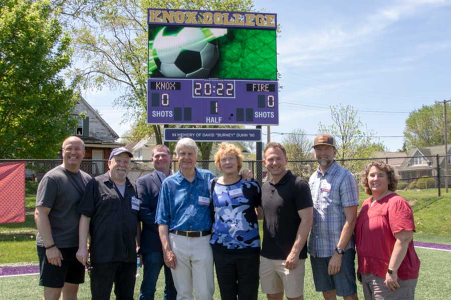 Lynn Chasson ’84 traveled from Milan, Italy, to visit Knox—the first time she’d been back on campus in the spring since graduating. Visiting with Valerie Andrew ’84, who is her regular Homecoming partner, was one draw, but getting to catch up with Jorge Prats, professor emeritus of Spanish, was the main reason. “I came specifically to say hello to Jorge. I studied with him in Barcelona in 1982.” Prats was honored during the dedication of a new soccer scoreboard and the Prats Field Archway during Homecoming.