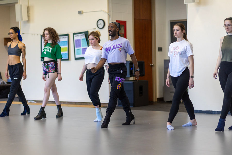On Friday, April 12, 2024, the residency concluded with the Honnold Lecture. Avery took to the stage in Kresge Recital Hall to discuss his personal growth as a dancer, learning the art form at Knox, and founding his dance class “Hips and Heels.” His lecture was followed by a preview of "Fall to Rise," a dance piece featured in the upcoming Knox Spring Dance Show on May 23-25, 2024. This piece showcased the students' work over the course of the residency, having only started on the piece less than a week prior following auditions with Avery.