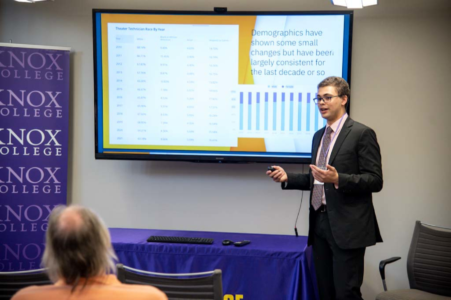 This was the first time Knox has hosted an oral presentation research symposium that included both a poster session and an oral presentation component, which Vovis Center for Research and Advanced Study and Health Professions Advising Director Lisa Harris says was a big moment. “We wanted it to feel like an undergraduate research conference,” Harris said.