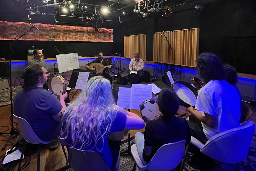 Open to students of all musical backgrounds, the class traveled to Chicago, IL, and Dearborn, MI, to engage directly with cultural institutions, participate in workshops with renowned musicians to learn to play repertoire from US-based Arab, Armenian, Jewish, Kurdish, and Turkish communities, and conduct exploratory research at the Arab American National Museum. The group discussed the global context of the music, with conversations about how conflicts past and present have affected both individual musicians and entire artistic traditions